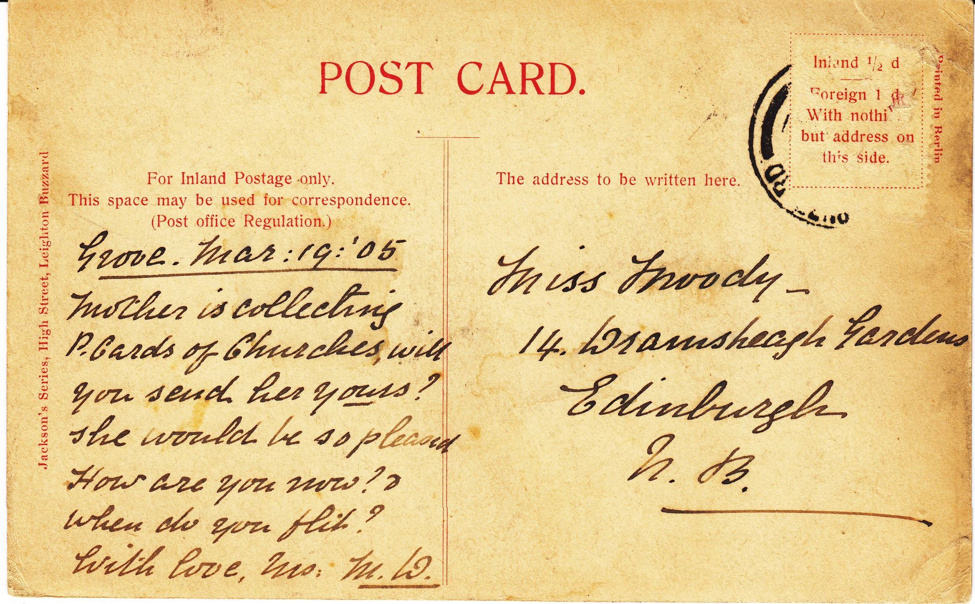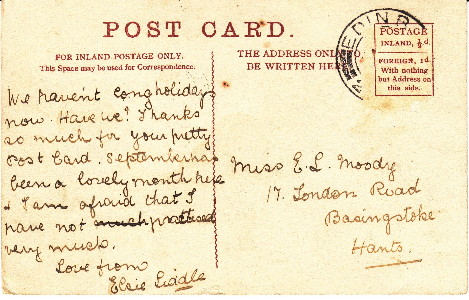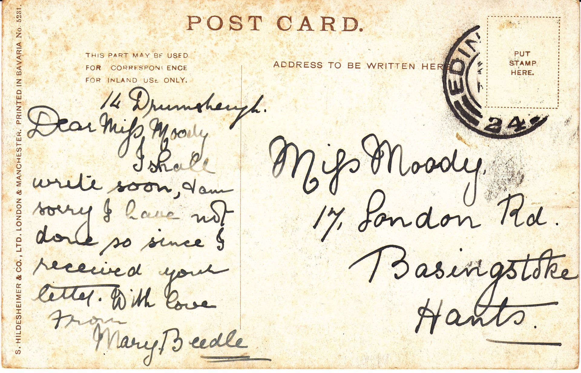 • Postcards - E L Moody from German Friends