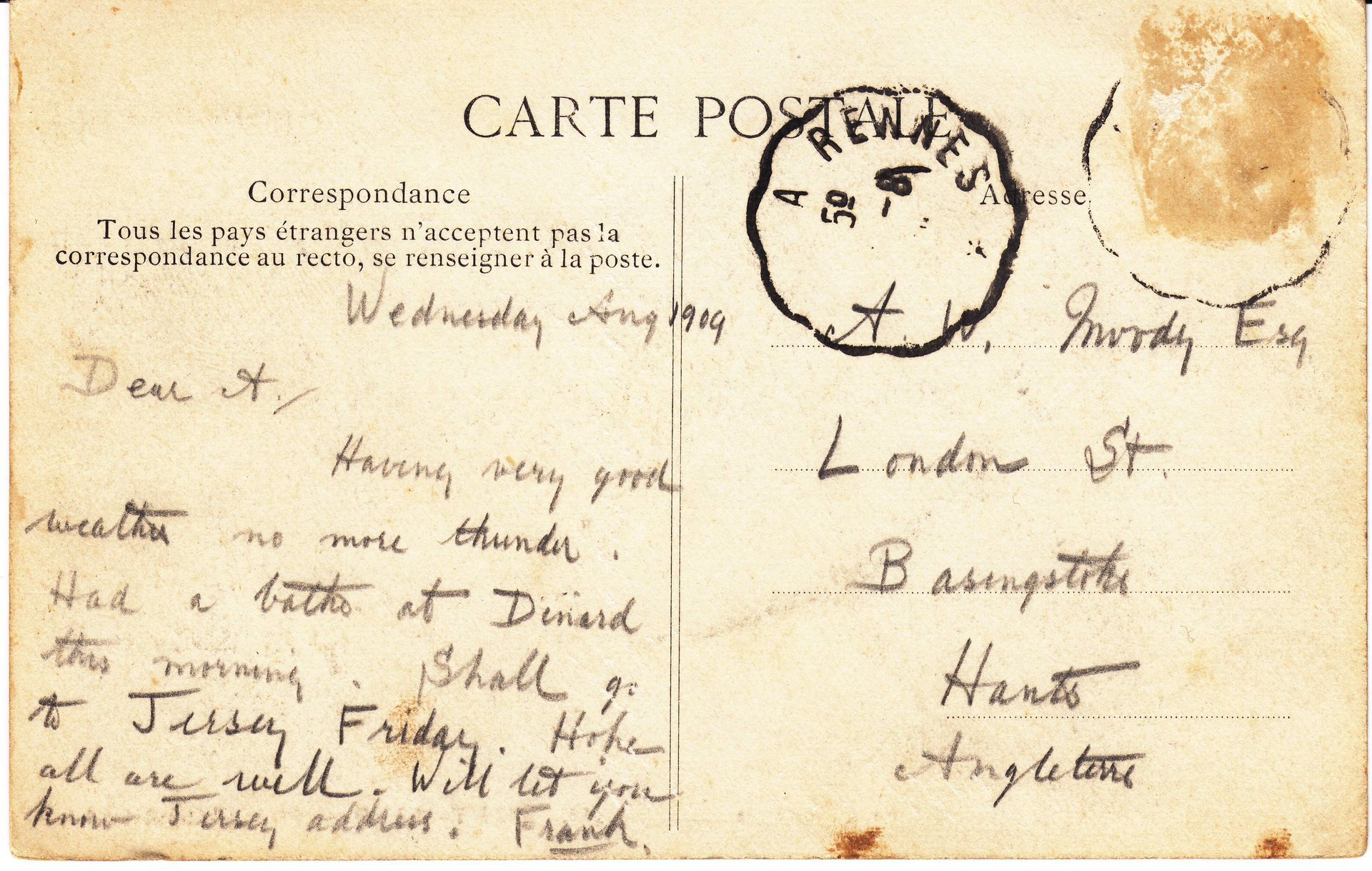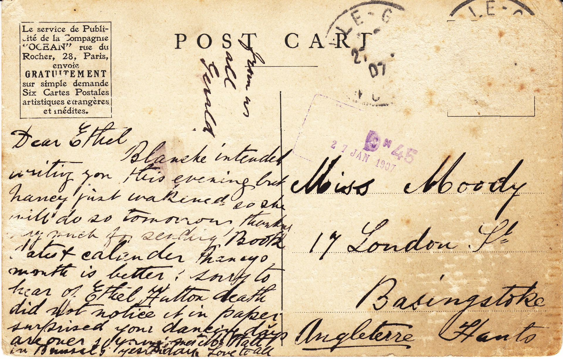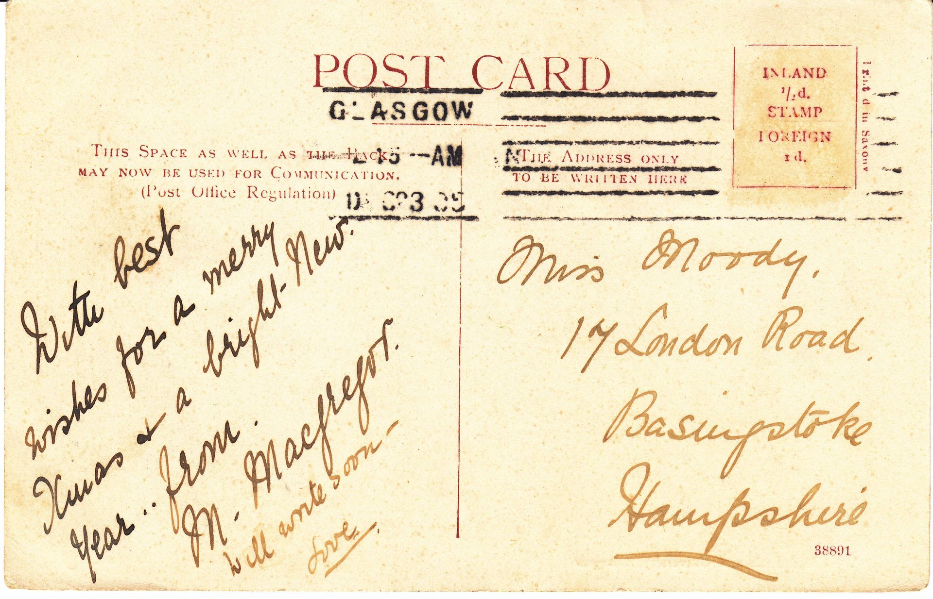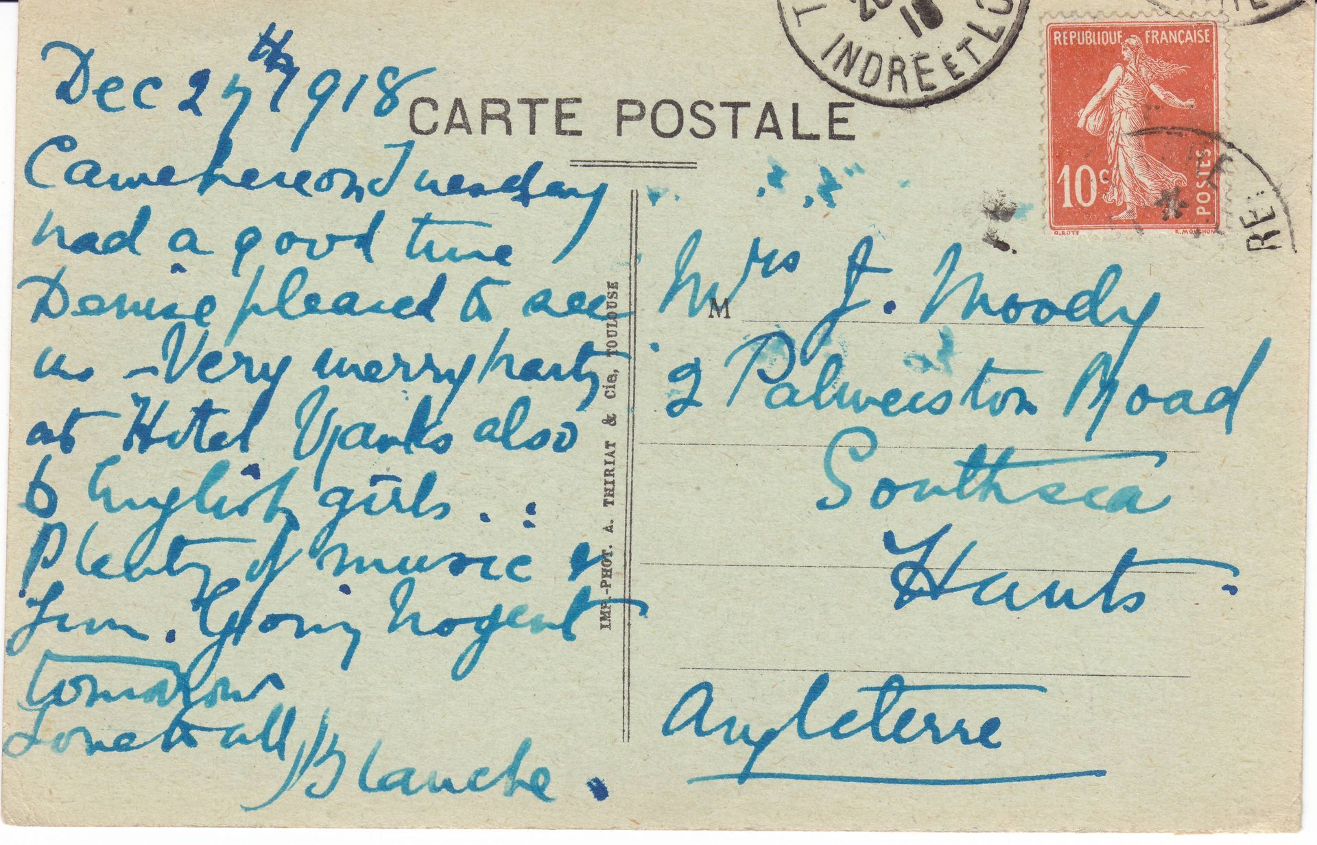 • Postcards - E L Moody from German Friends